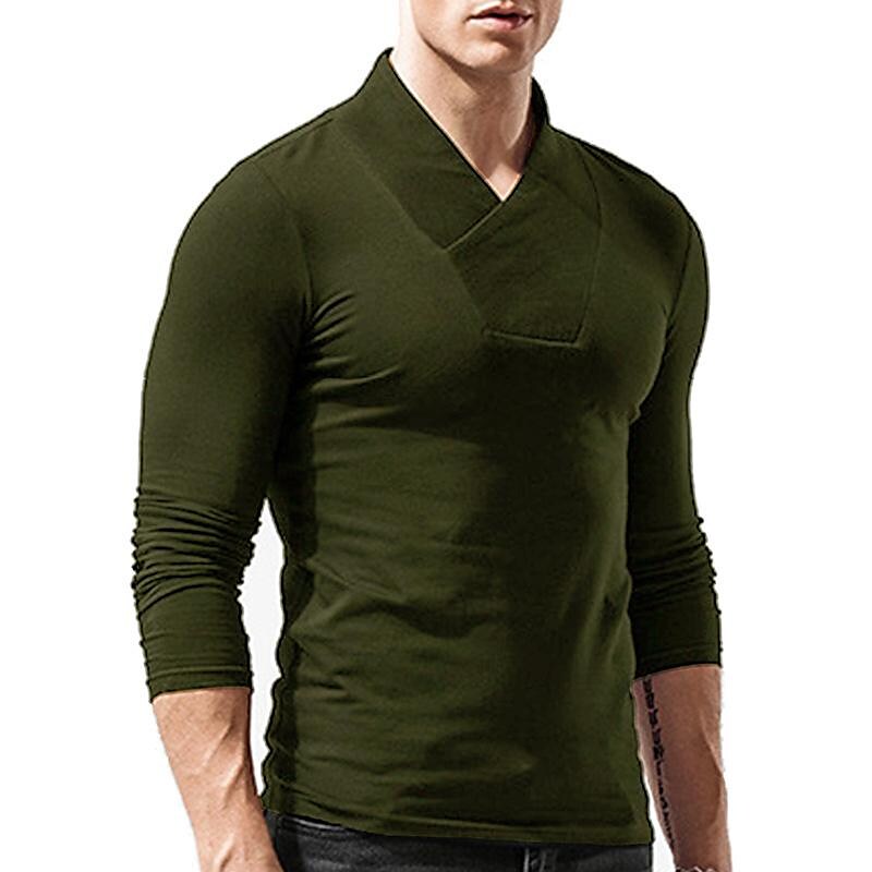 Men's Solid Color Stand Collar Slim Fit Stretch Long Sleeve Shirt