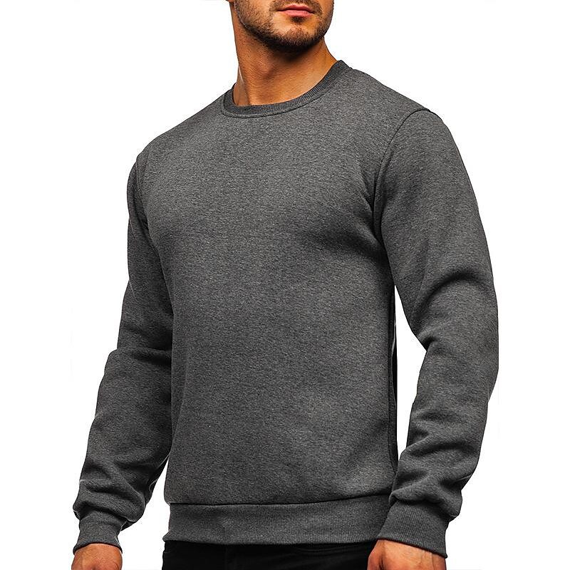 Men's Pullover Solid Color Fleece Crew Neck Sweatshirts