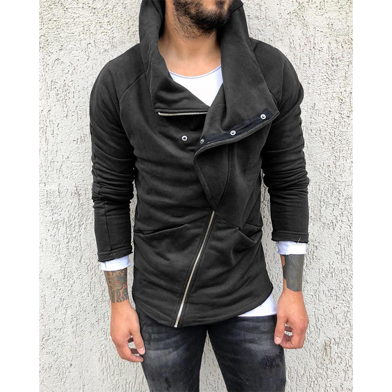 Men's Hooded Solid Color Drawstring Pocket Special Design Zip Sweatshirt Casual Retro