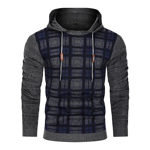 Men's Pullover Jacquard Houndstooth Hooded Sweater Basic Vintage Style