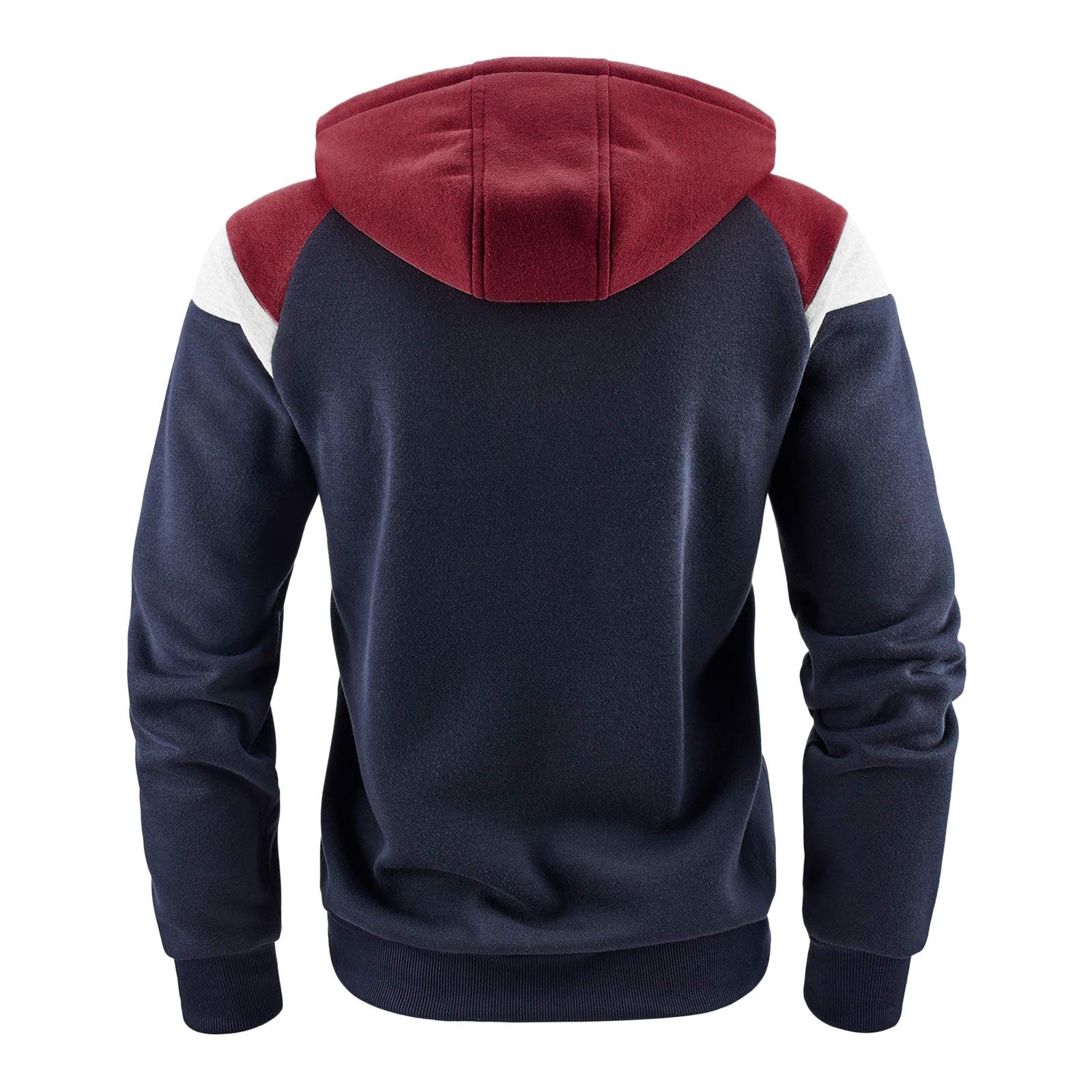 Men's Contrast Color Zip-up Hooded Fleece Cardigan Sweatshirt