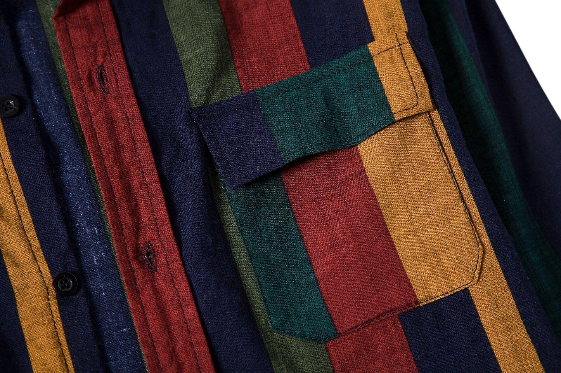 Herren Hemd mit Kontraststreifen Druck und doppelten Taschen, langärmlig