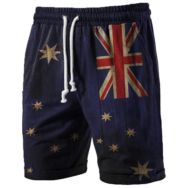 Miesten Amerikan lipun printillä varustetut naru- ja taskulliset elastiset vyötäröshortsit