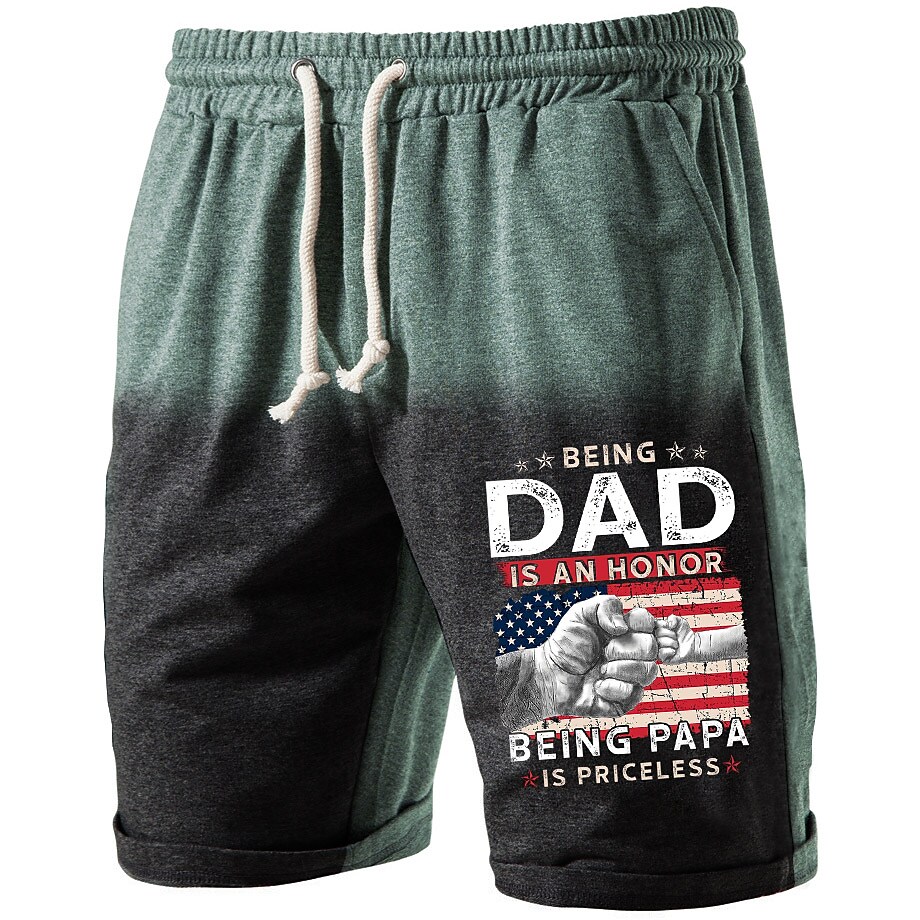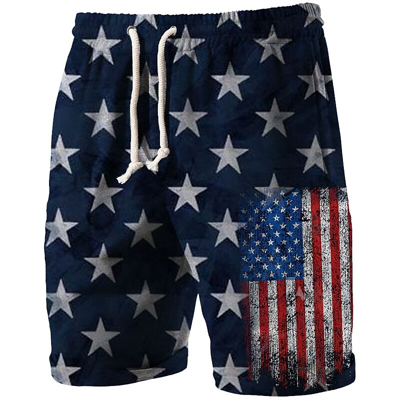 Miesten graafinen kuvioitu Amerikan lippu naru-tasku joustava vyötärö shortsit