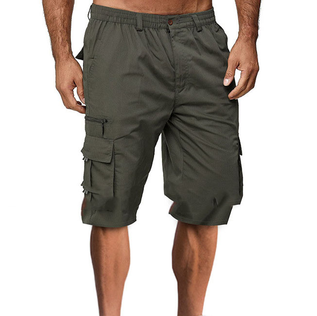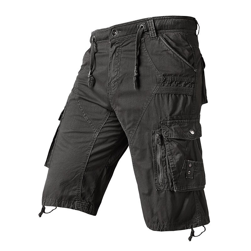 Miesten klassiset rento joustovyötäröiset useilla taskuilla varustetut cargo-shortsit