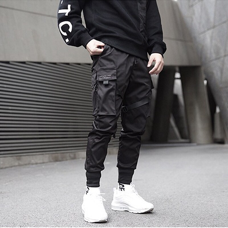 Miesten yksiväriset, monitaskuiset vapaa-ajan housut