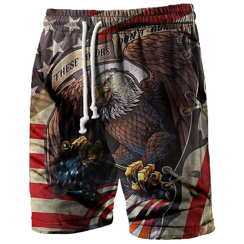Miesten graafinen kuvioitu kotka naru-tasku joustava vyötärö shortsit