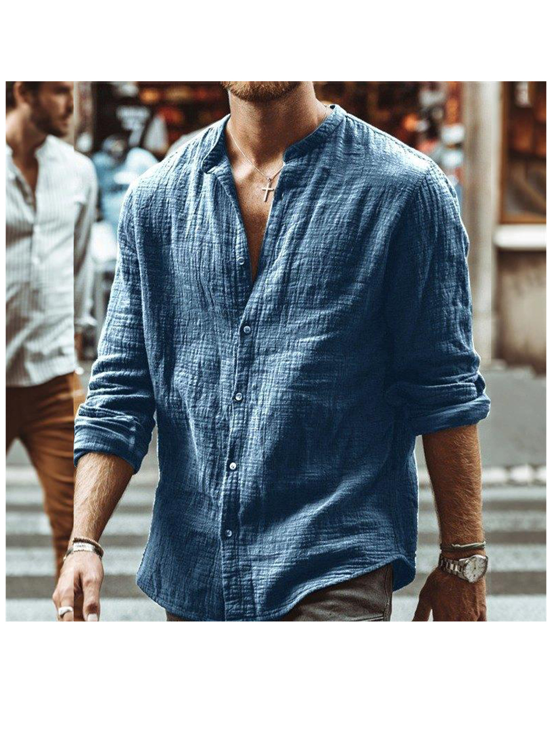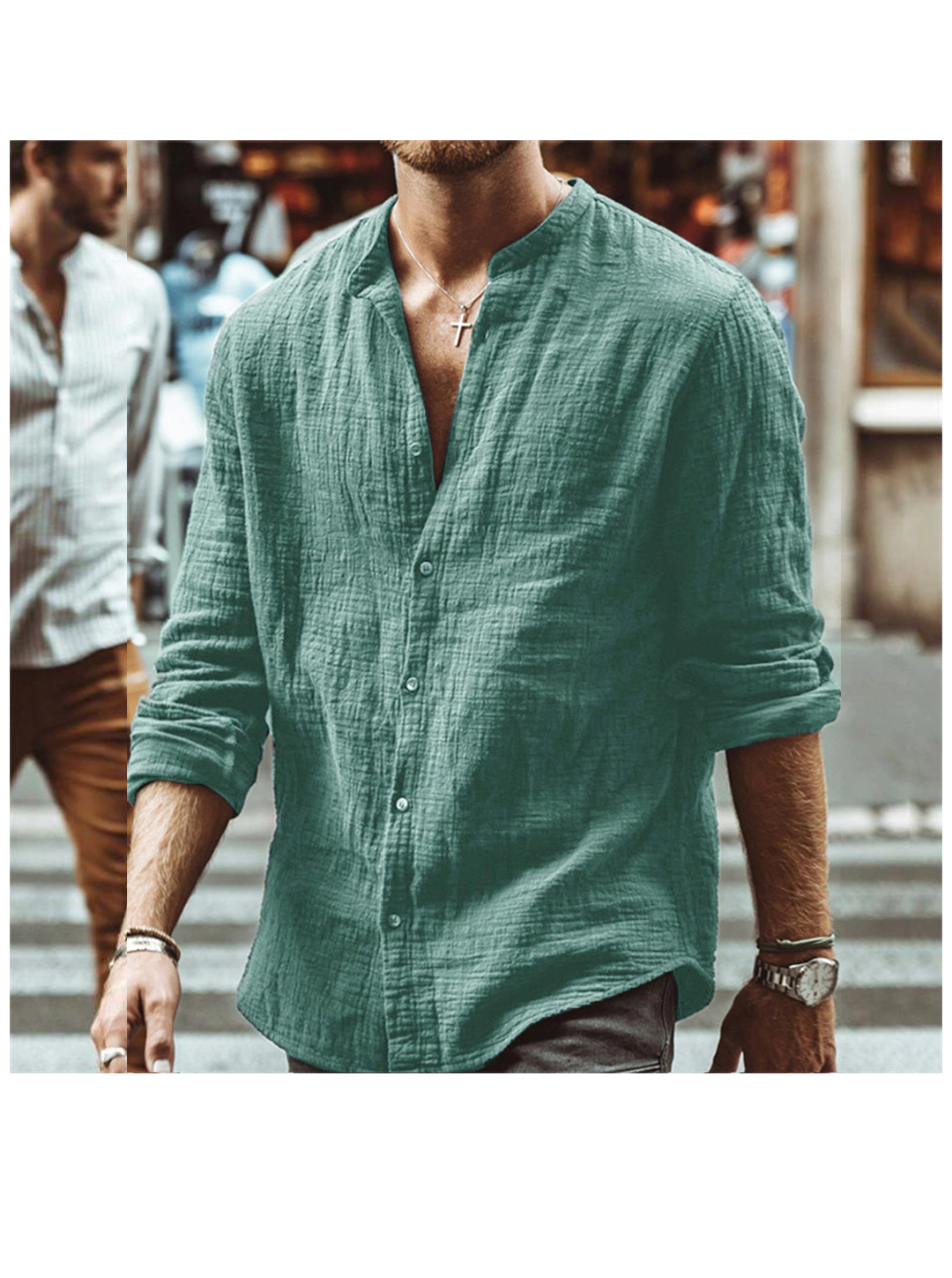 Harold Solid Color Henry Collar T-paita