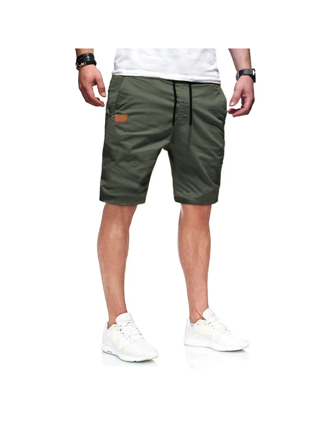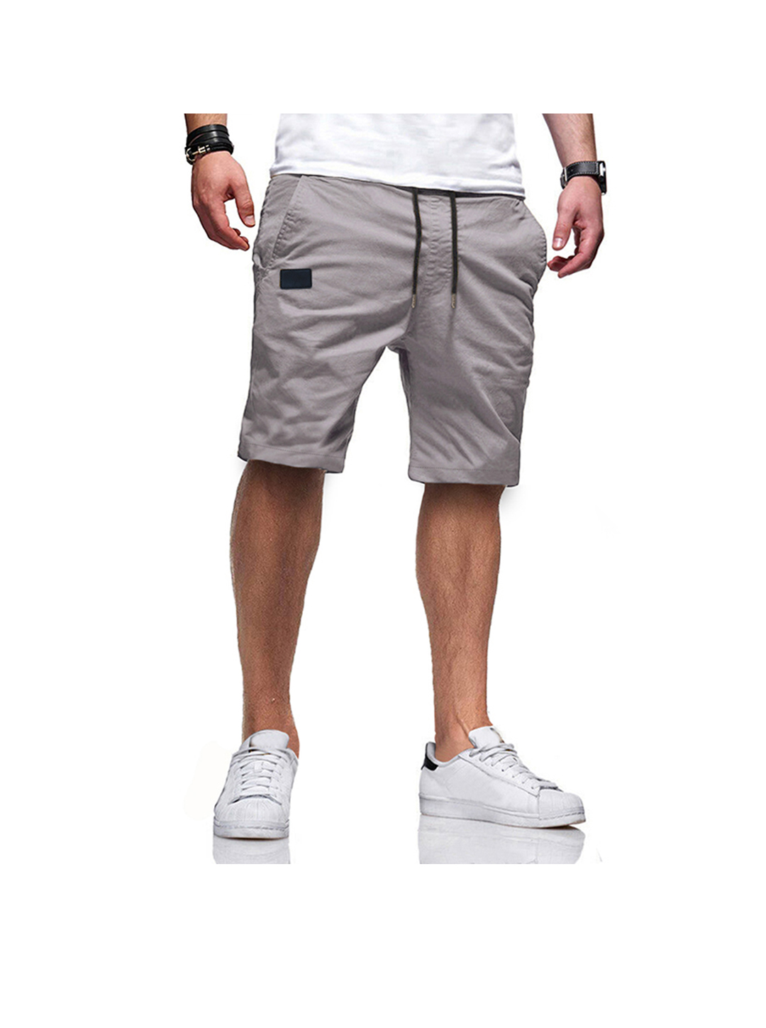 Shorts ajustables à cordon de serrage pour hommes, taille mi-haute, unis