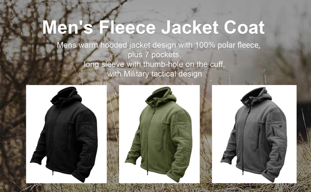 Men's Warm Military Tactical Sport Fleece Hoodie Jacket