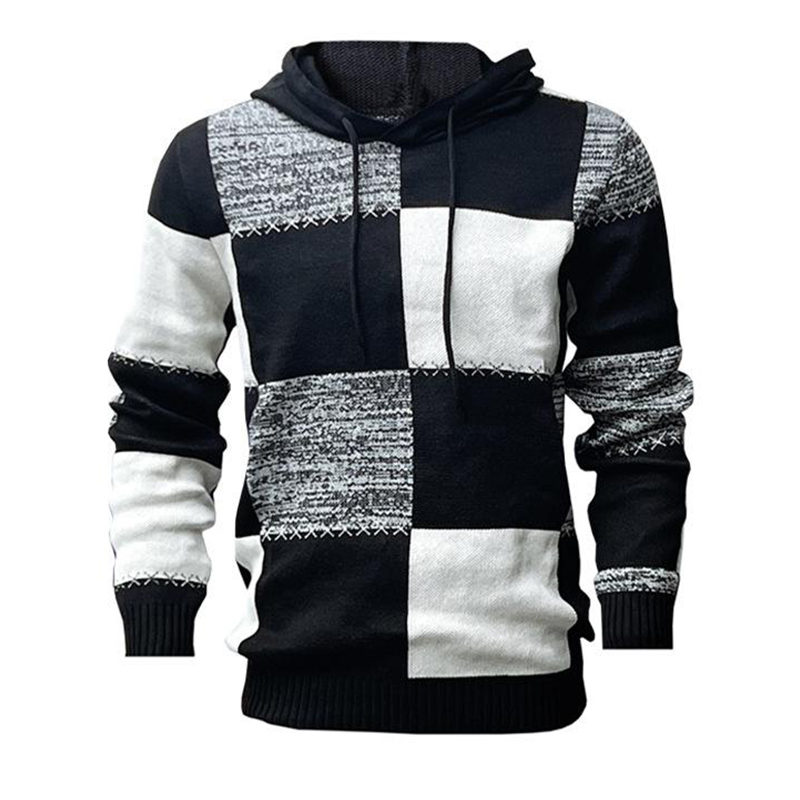 Męska dzianinowa bluza z kapturem w małą kratkę