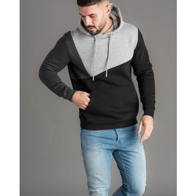 Męska bluza z kapturem i ściągaczem w bloki kolorów
