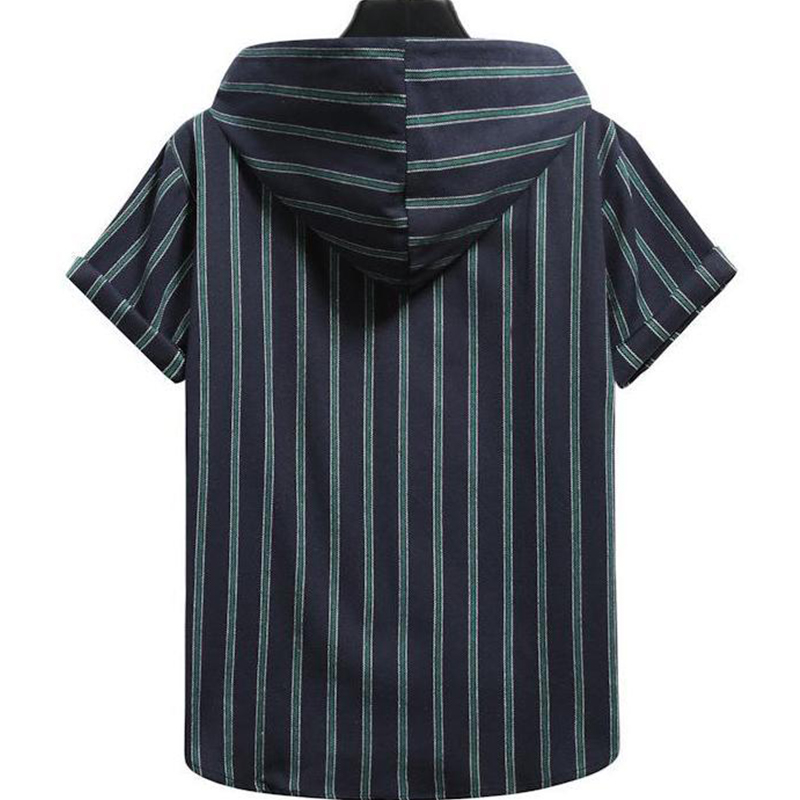Męska casualowa koszula z kapturem w paski, krótki rękaw