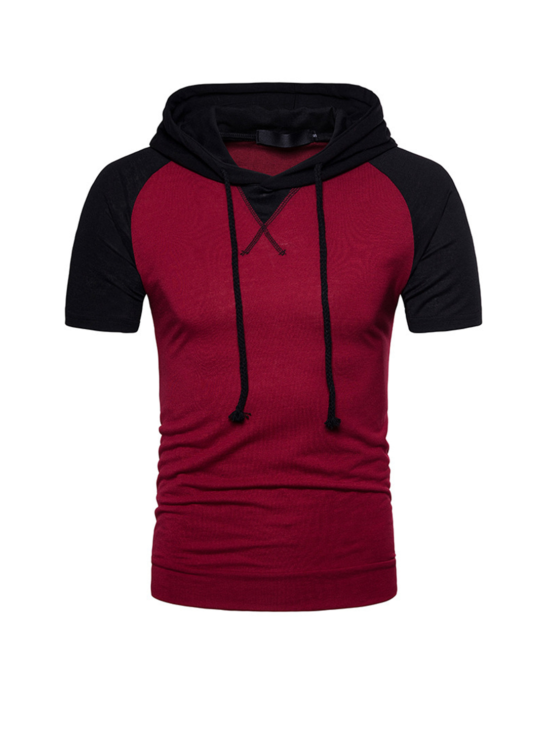 Vincent jednolity kolor fałszywy dwuczęściowy krótki rękaw z kapturem T-shirt