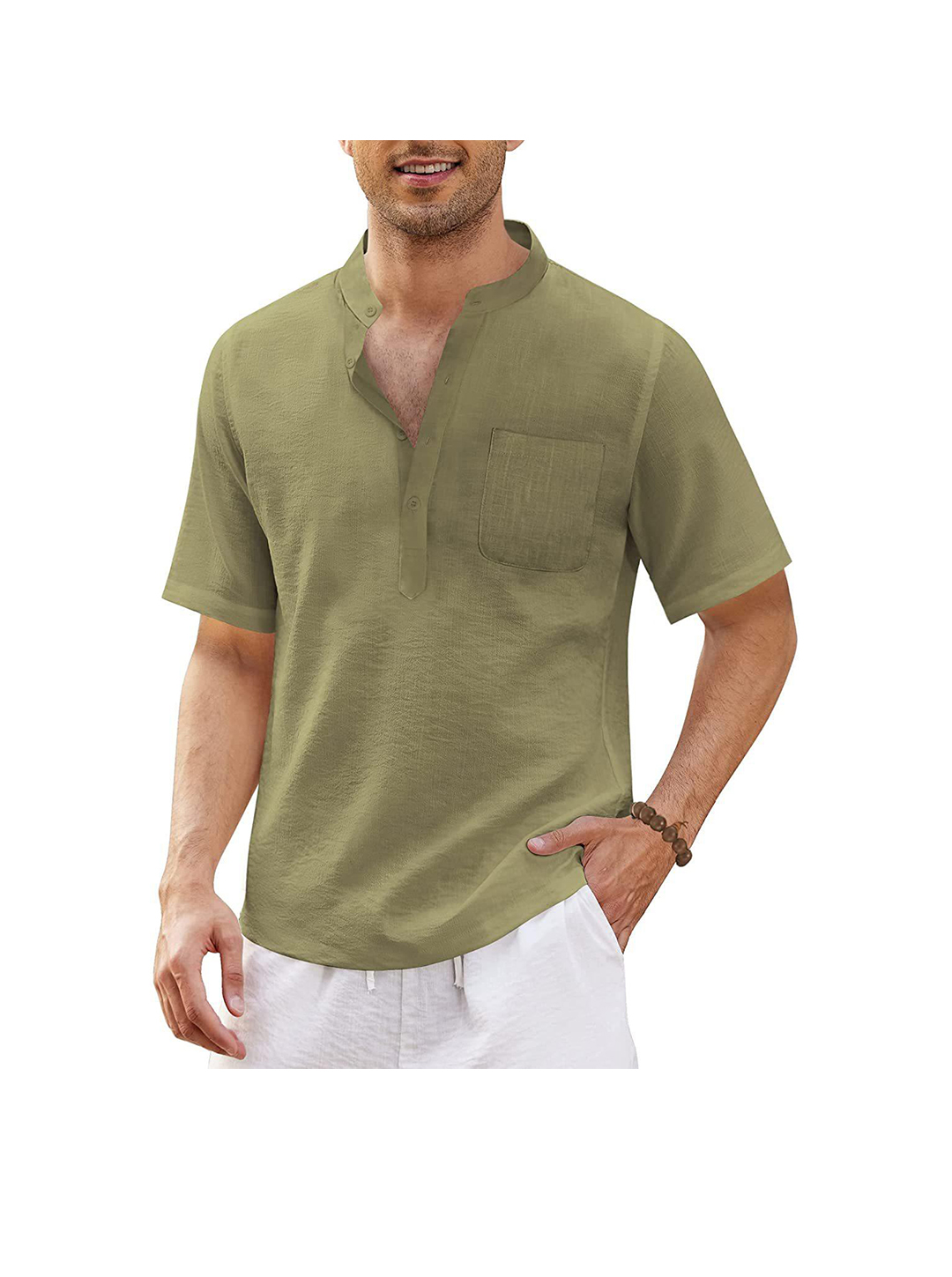 Męska jednolita koszula Henley z krótkim rękawem, zapinana na guziki
