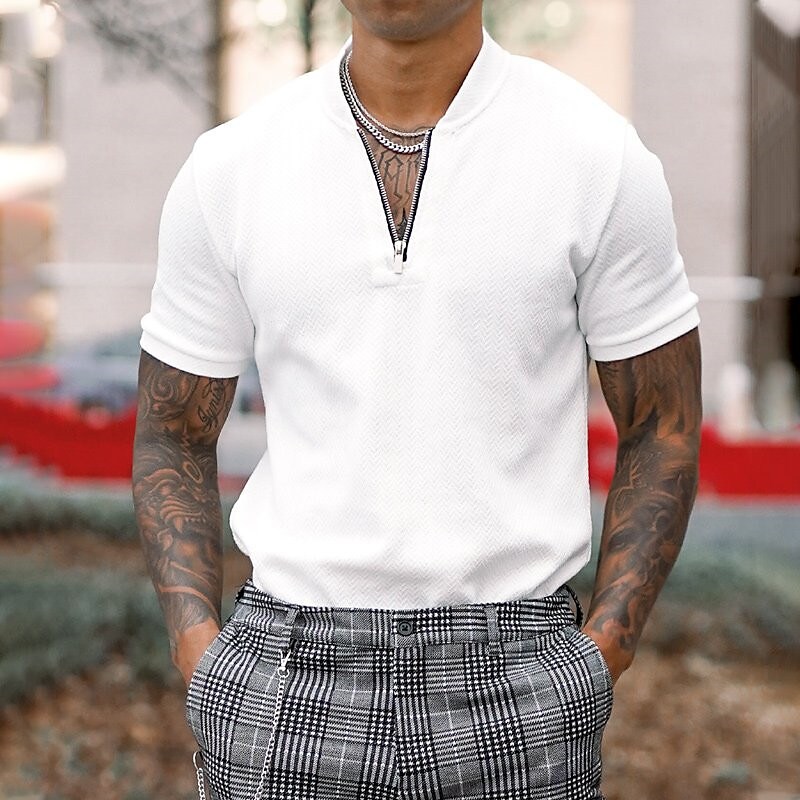 Męska koszulka z nadrukiem Street Casual w jednolitym kolorze i zamkiem błyskawicznym