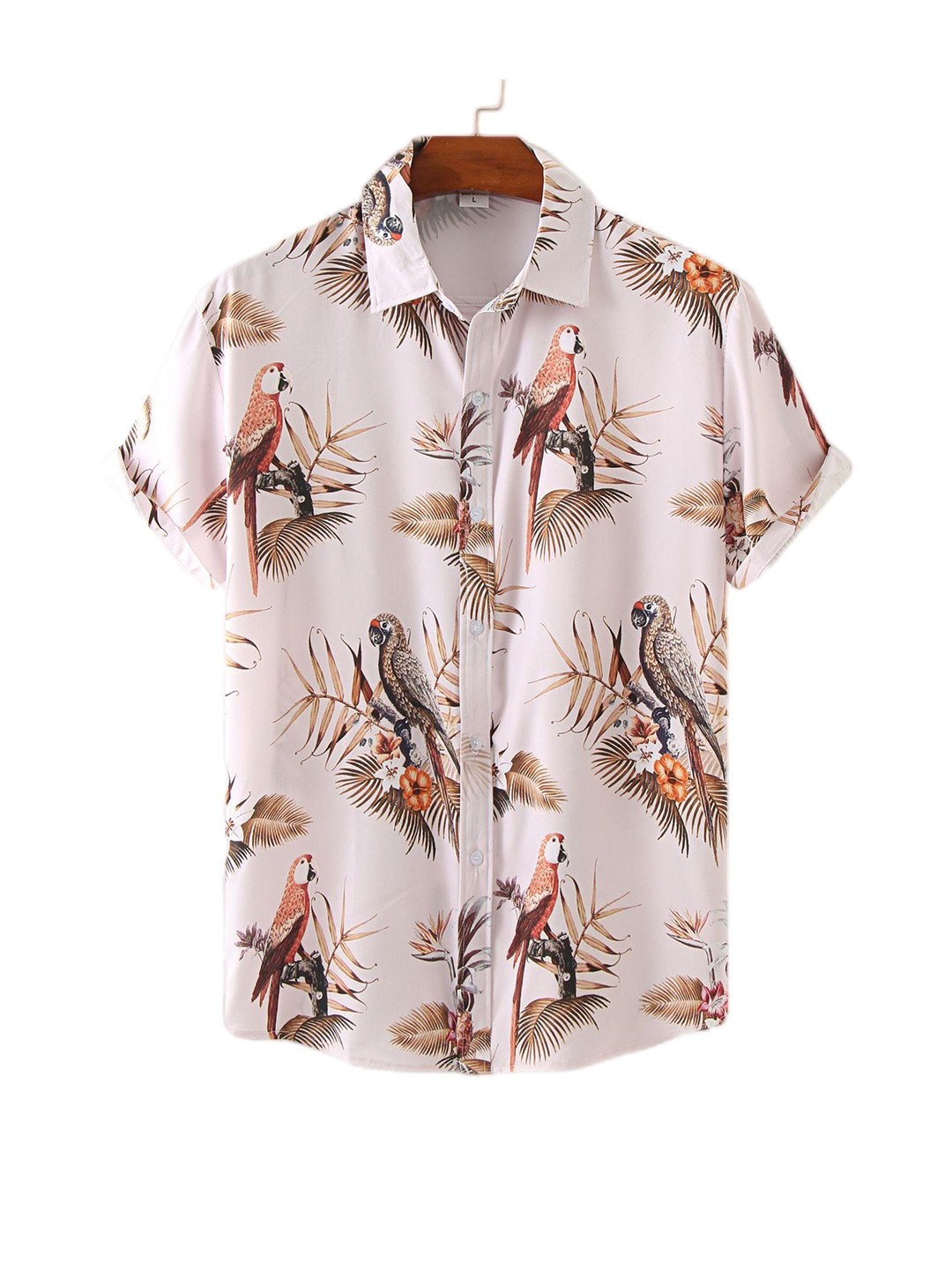 Koszule plażowe męskie z etnicznym nadrukiem hawajskim, krótki rękaw, z guzikami