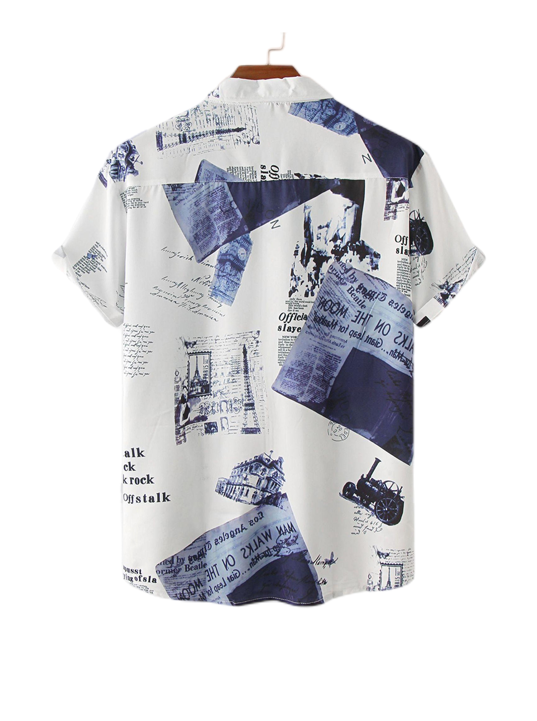 Koszula męska graficzna klasyczny kołnierzyk casual codzienne krótkie rękawy tops