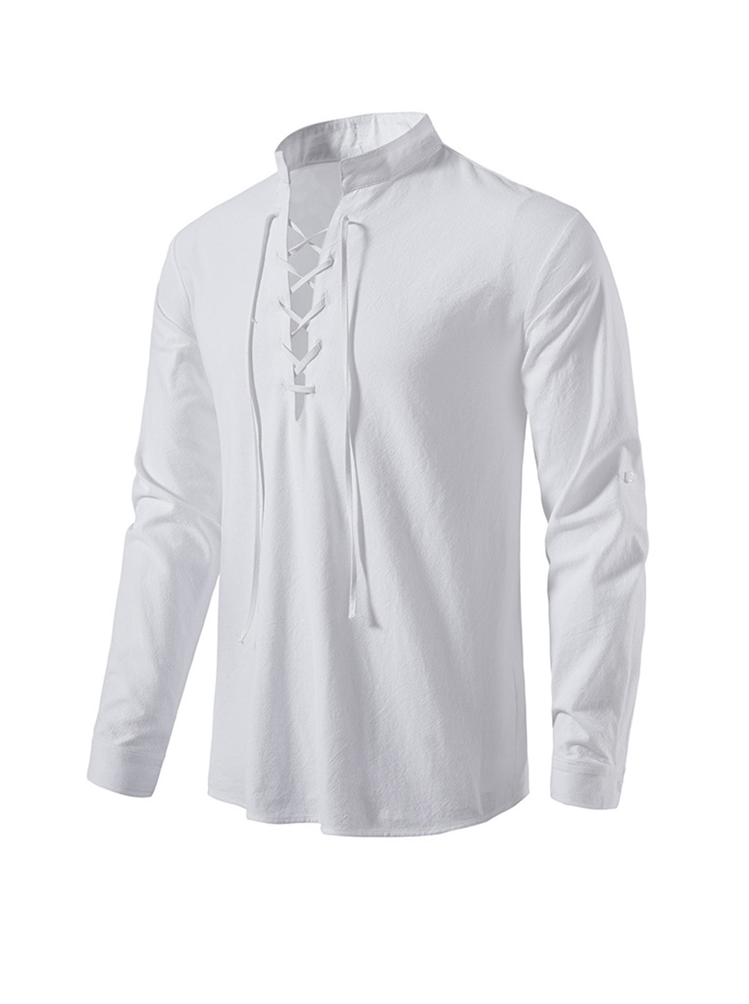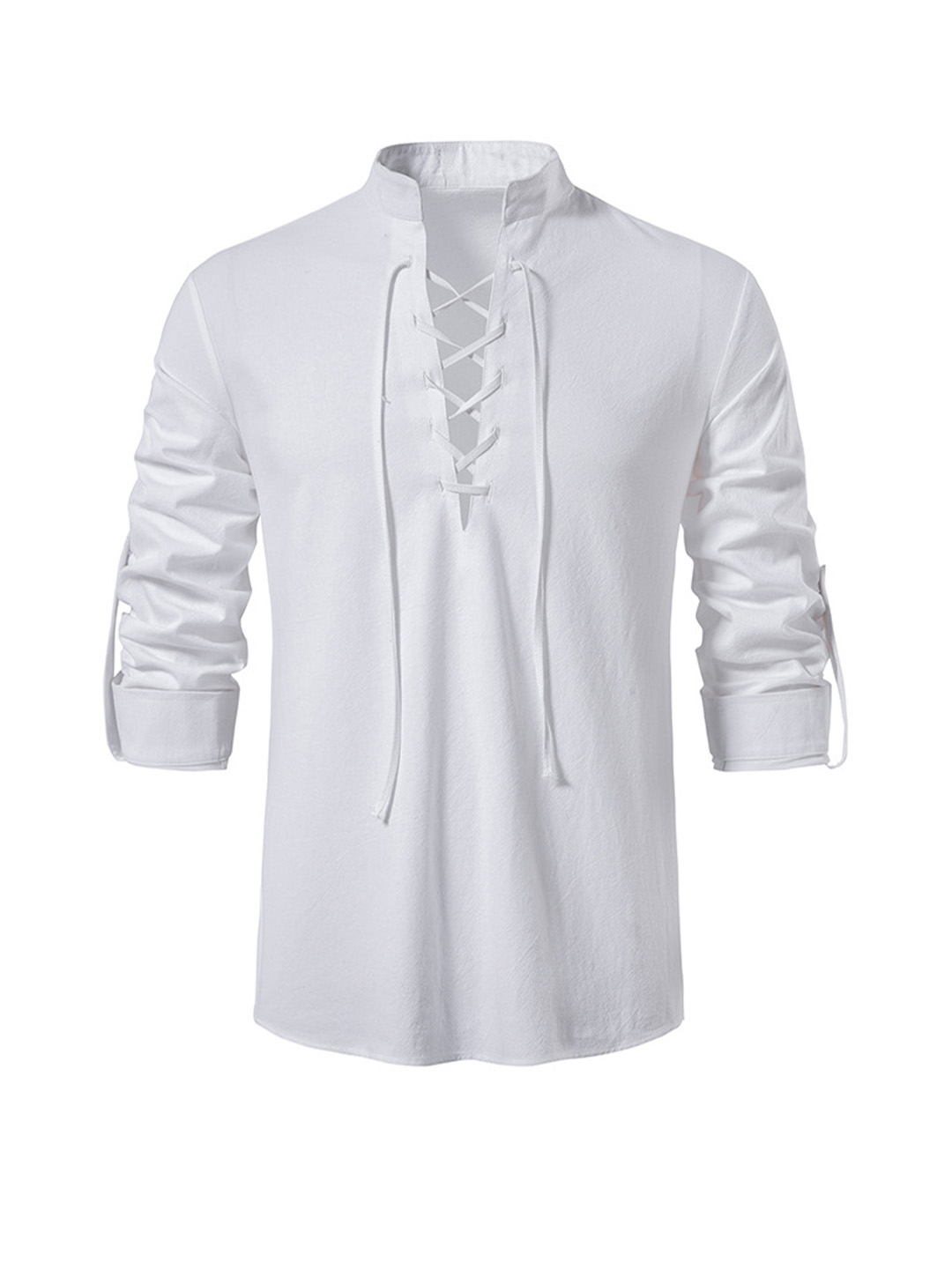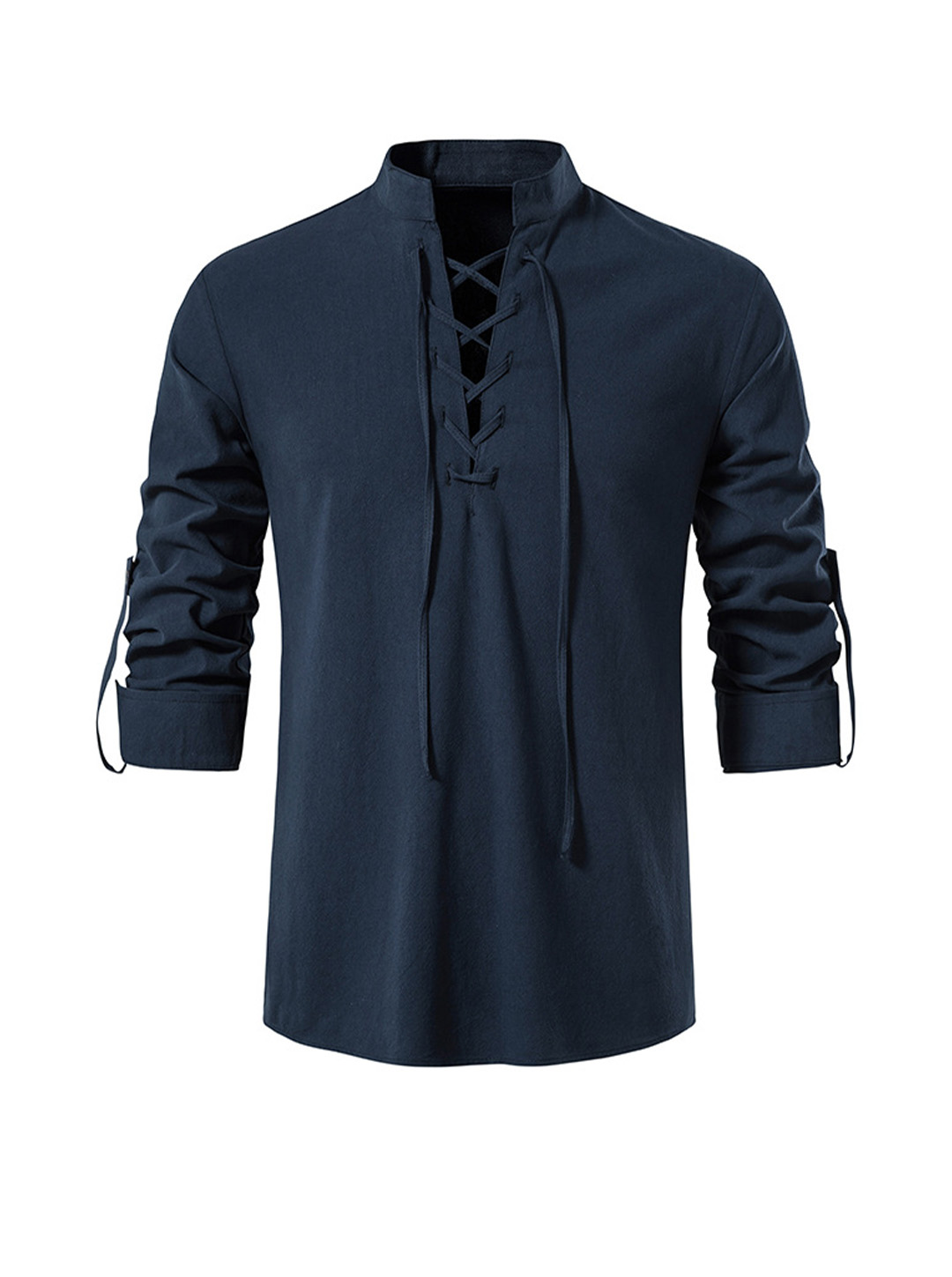 -Kołnierz stójkowy, guziki z rolowanymi rękawami