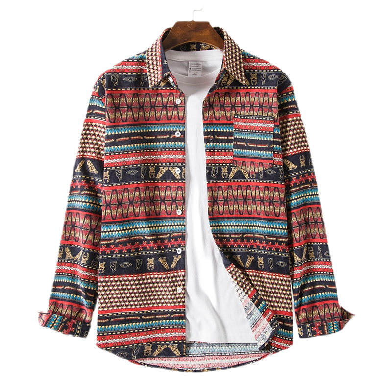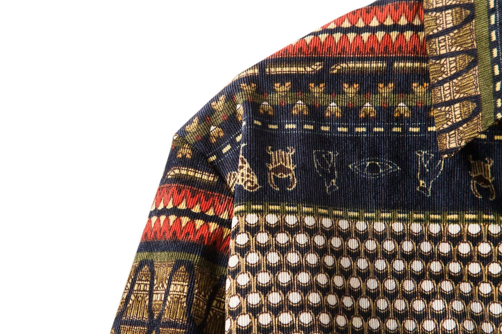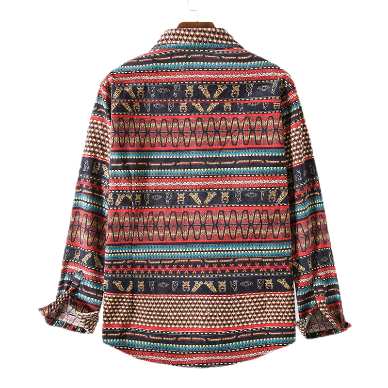 - Design Elements: Contrast Color, Ethnic Print, Button Down