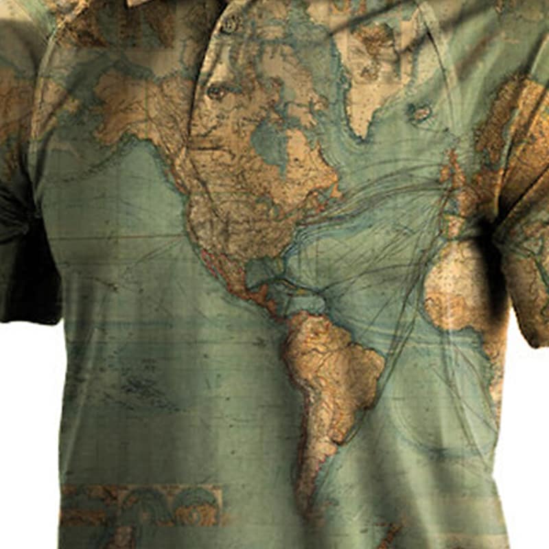 Men's Map Casual Short Sleeve Polo T-shirt