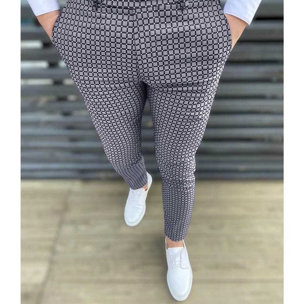 Men's Small Plaid Print Slim Fit Casual Pants
