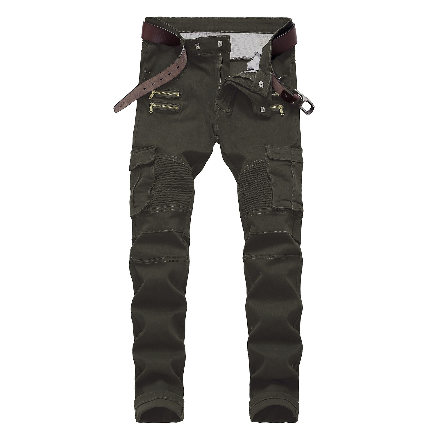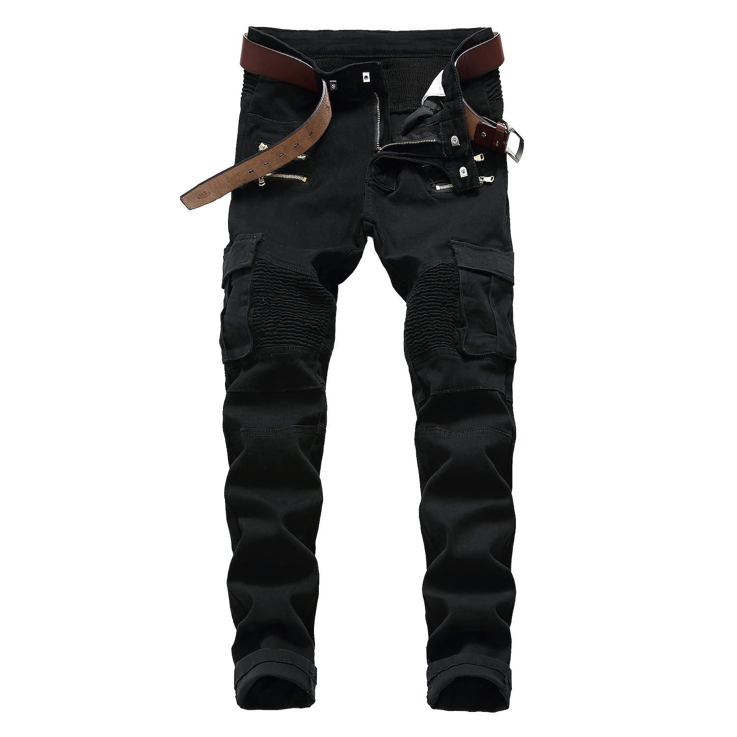 Men's Vintage Distressed Zip Pleated Straight Jeans(Belt Not Included)
