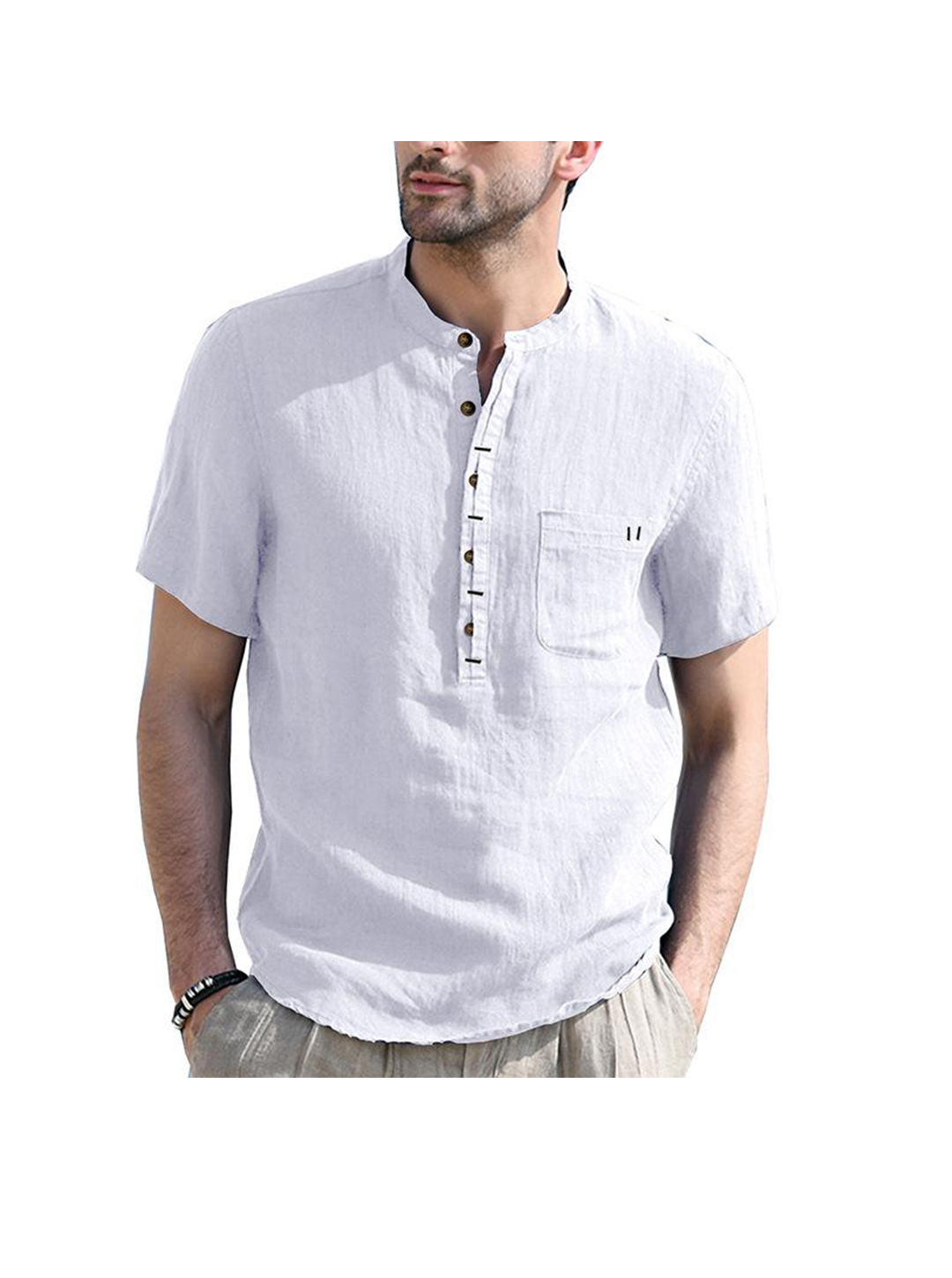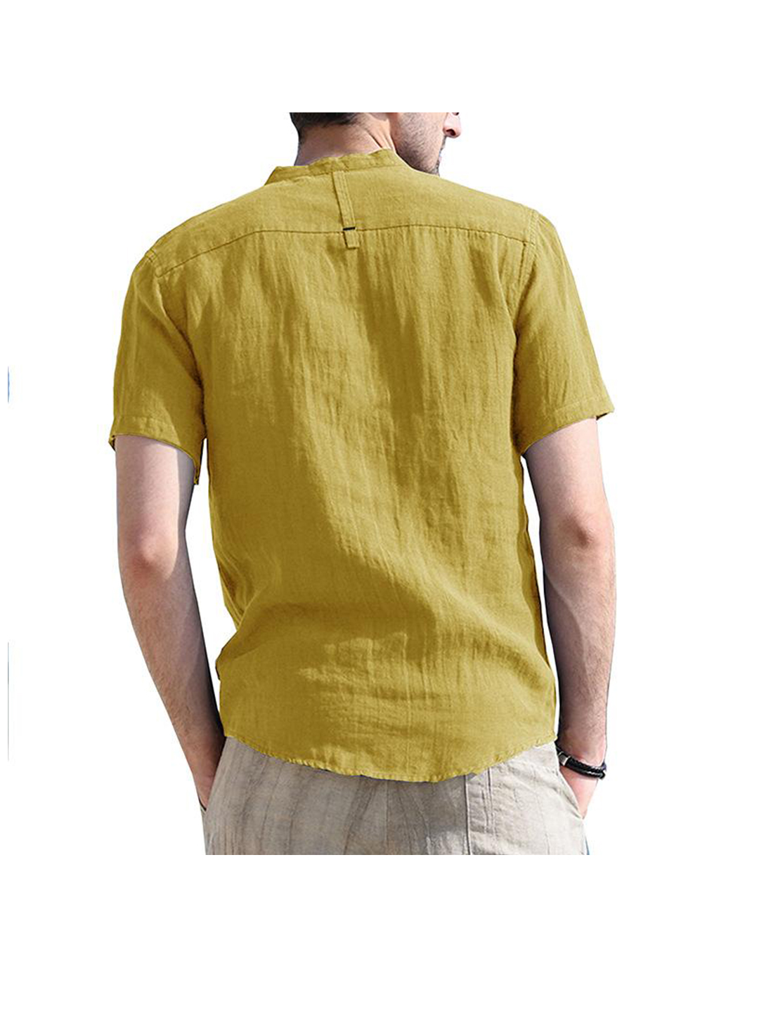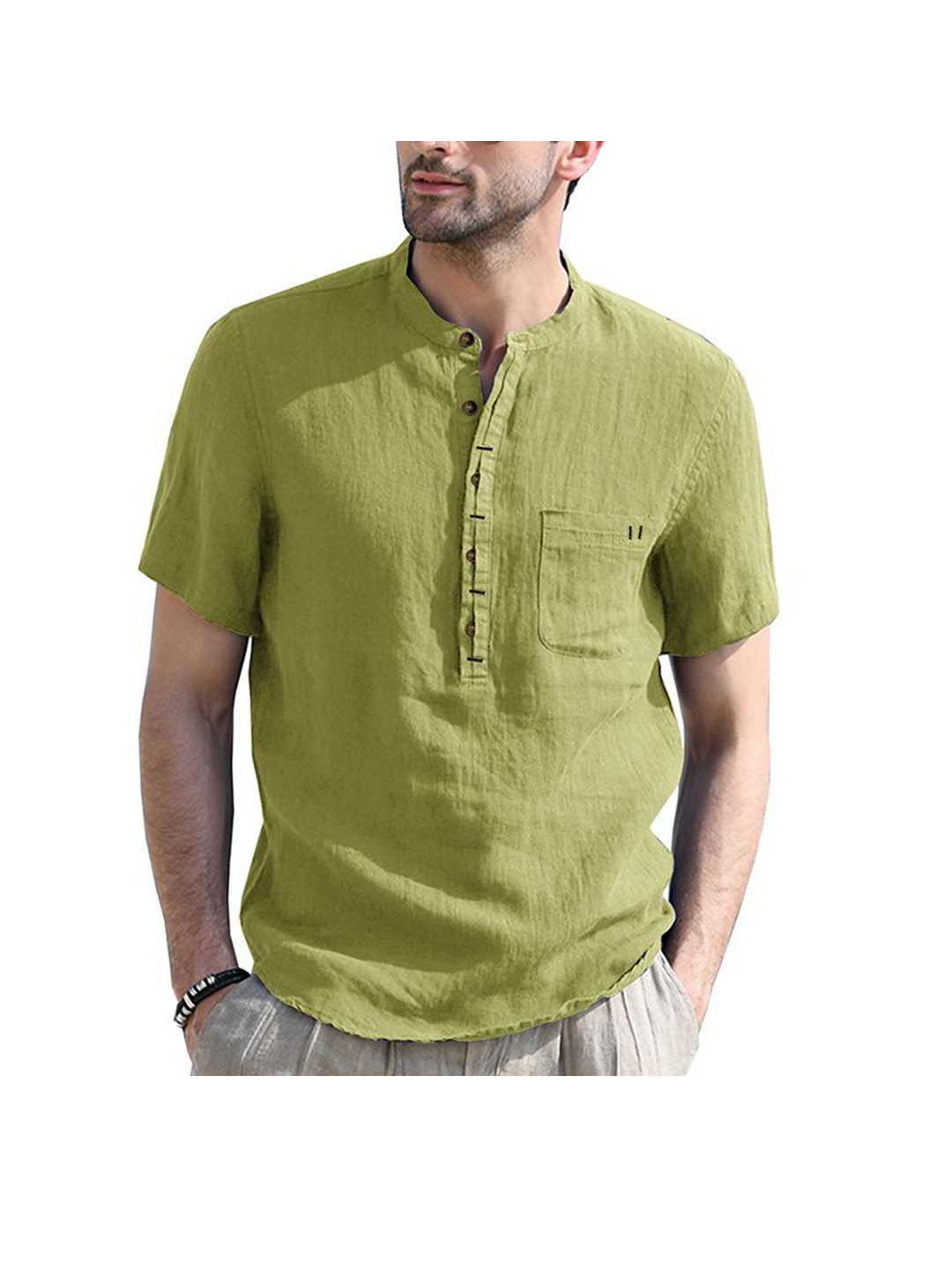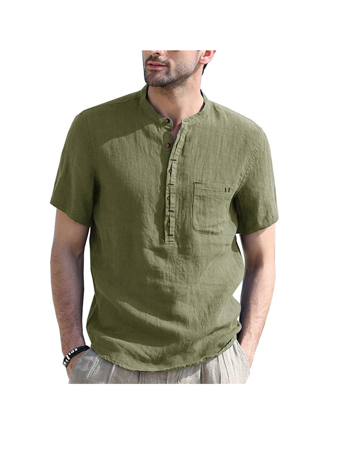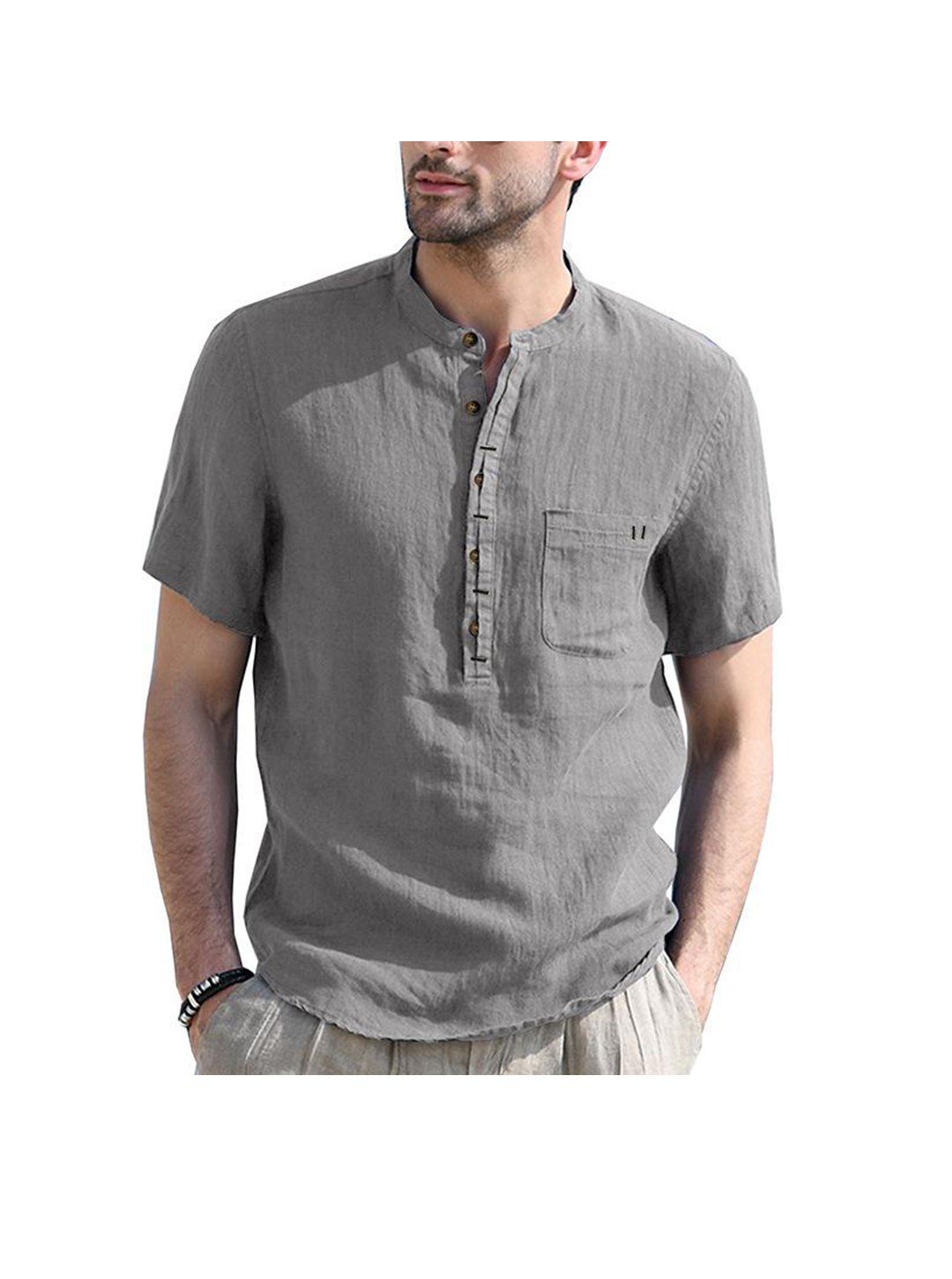-Henry Collar,Solid Color,Patch Pocket