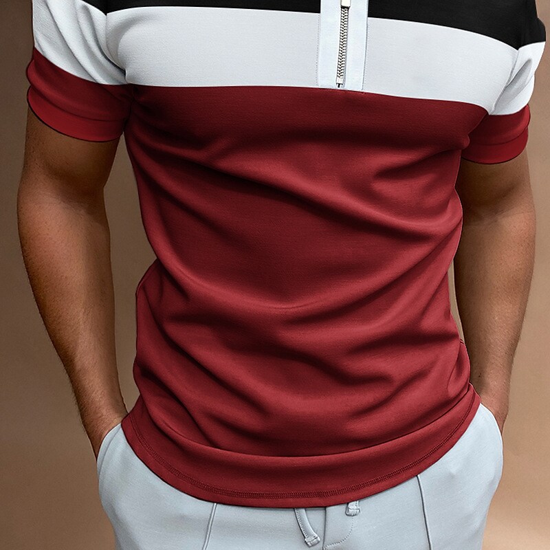 Herrars färgblock casual dragkedja kortärmad polo t-shirt